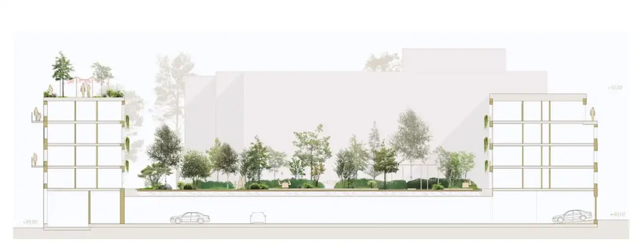 Active ground floors with local services and shared functions contribute to safety and vitality. Reused materials, energy-efficient systems and a rational structural concept ensure low climate impact and buildability.